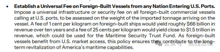 《美国海事行动计划》收费条款原文